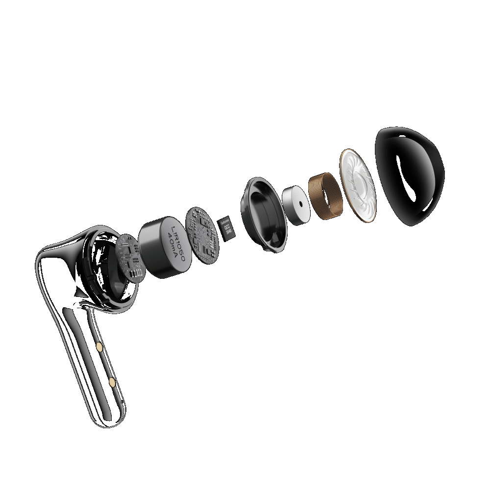 Die vier in den FlyBuds C2 verbauten Mikrofone filtern in Verbindung mit dem ENC-Feature (Environmental Noise Cancellation) bis zu 90% aller Hintergrundgeräusche effektiv heraus und lassen so nur die Stimme des Nutzers beim Gesprächspartner glasklar und verständlich ankommen.