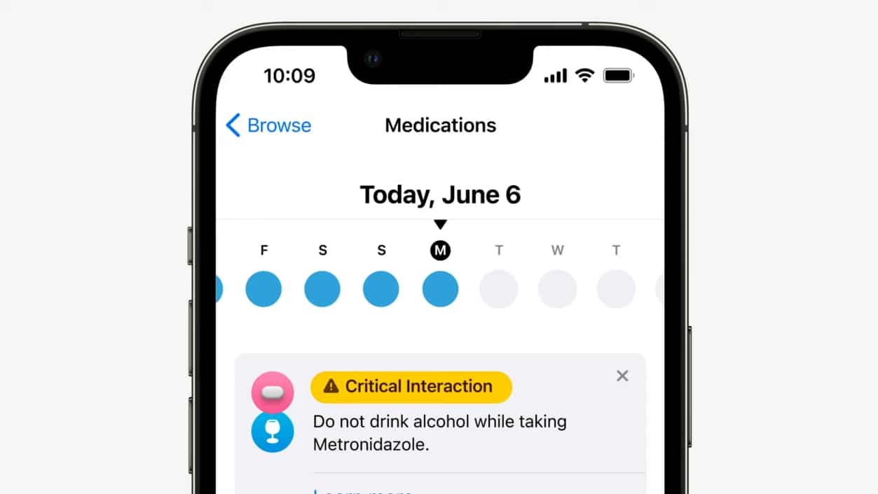 Zudem führt Apple eine neue Medikamente-App ein, in der sich regelmäßig und unregelmäßig eingenommene Medikamente einfügen lassen und das sogar per Kamera-Scan mit dem Smartphone. Hier lassen sich zudem Erinnerungen erstellen, wann ein bestimmtes Medikament eingenommen werden muss. Zusätzlich liefert die App Informationen zu möglichen Wechselwirkungen mit anderen Mitteln.