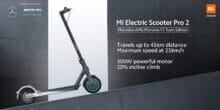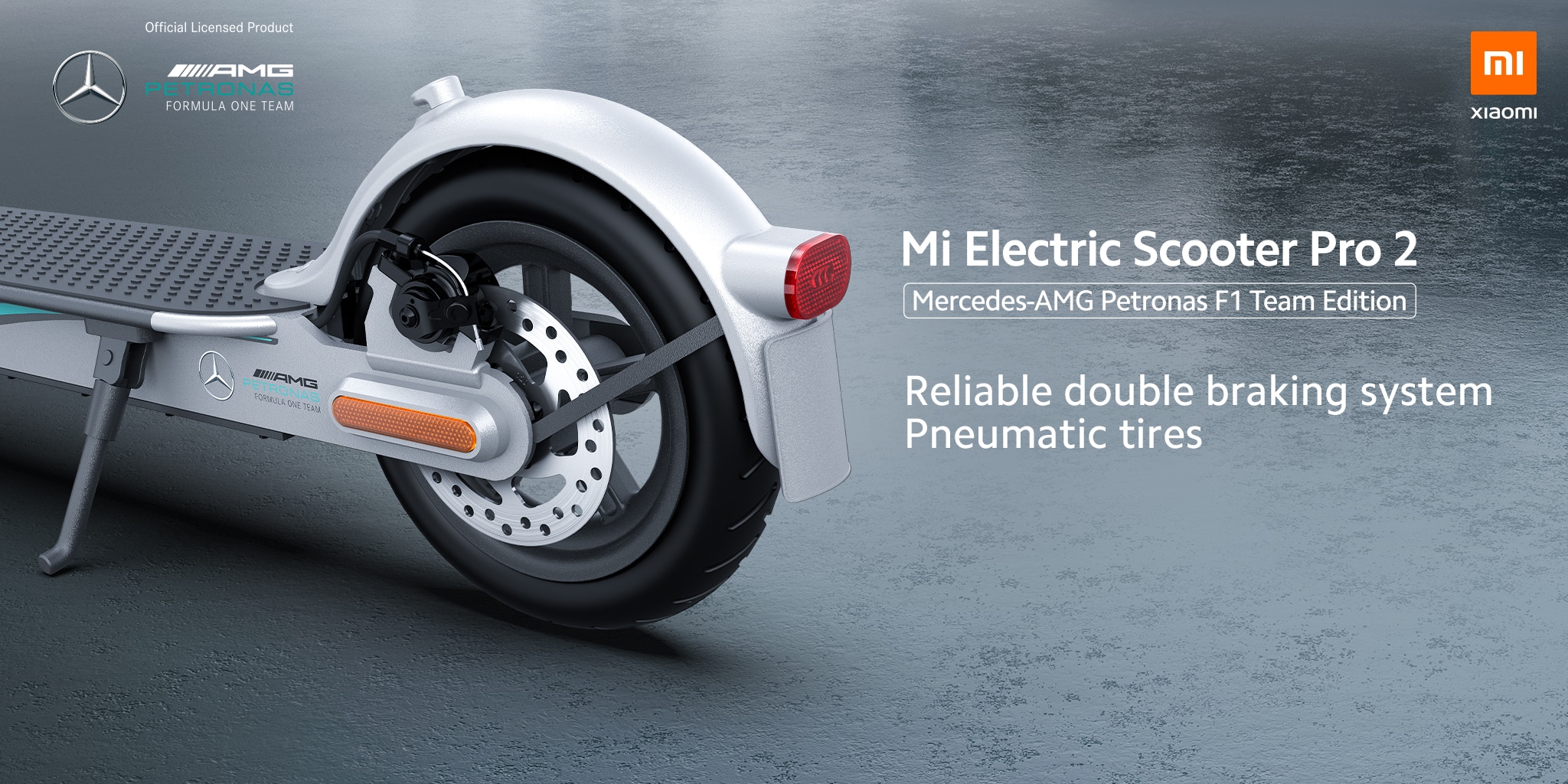 Doch wie in der Formel 1 soll auch bei dem elektrisierenden Scooter Sicherheit eine große Rolle spielen. Neben einem Doppelbremssystem betont Xiaomi auch die speziellen Reifen, die mit Luft gefüllt sind und über zuverlässige Stoßdämpfer verfügen sollen. Das integrierte Display sorgt dafür, dass der Fahrer stets die wichtigsten Infos im Auge behält. Xiaomi möchte hier Leistung mit Portabilität verknüpfen. So lässt sich der AMG-Scooter nach Herstellerangaben unkompliziert zusammenklappen und verstauen. Die AMG-Version des Electric Scooter Pro 2 könnt ihr euch ab 24. September zu einer UVP von 799 Euro sichern.