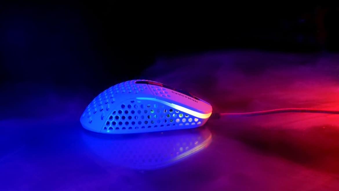 Am ergonomischen Design für Rechtshänder hält der Hersteller weiterhin fest, auch die Abmessungen der Gaming-Maus (120 x 68 x 39 mm) und das Gewicht von 69 Gramm bleiben gleich. Auch am grundlegenden, auffälligen Design samt kreisrunder Löcher und der RGB-Beleuchtung an Mausrad und Seitentasten ändert sich nichts.