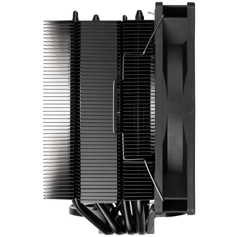 Der schnelle Wärmetransfer ermöglicht die für einen Kühler dieser Größe beträchtliche 180W TDP. Die asymmetrische Anordnung der Pipes ermöglicht eine Kompatibilität mit unterschiedlichsten RAM-Modulen.