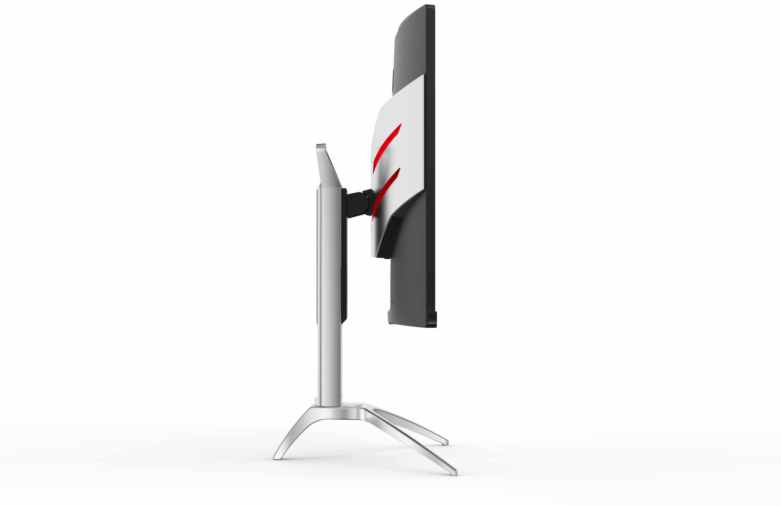 Ergonomisch trumpft AOC erneut mit seinem Ergo Base Standfuß auf, der in der Höhe verstellt, aber ebenso geneigt und und gedreht werden kann.