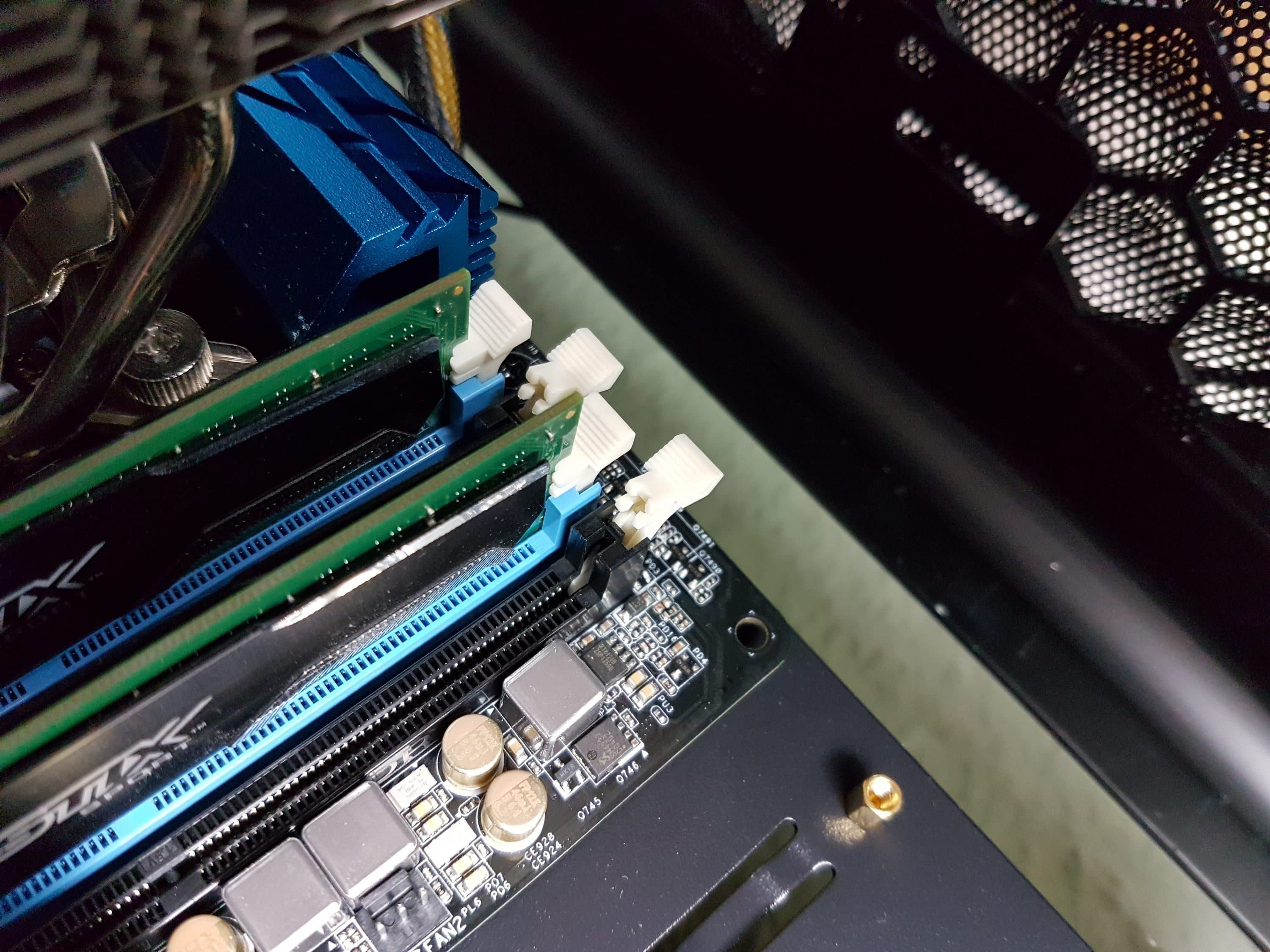 - Öffnet die kleinen Hebel am Ende der leeren RAM-Slots auf dem Mainboard, damit ihr den RAM ohne Probleme einsetzen könnt. Falls ihr euren alten RAM entfernen wollt, müssen diese ebenso geöffnet werden um die Riegel einfach herausziehen zu können.