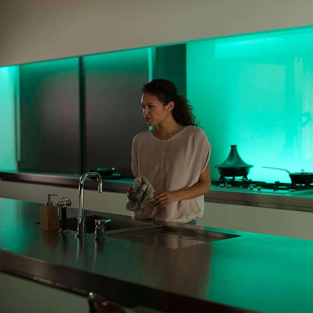 Tipp: Wer bereits einen Philips Fernseher mit Ambilight hat, kann mit den farbigen Varianten seine Lampen ebenfalls dem Fernsehbild folgen lassen. Damit wird ein noch tiefer gehendes Fernseherlebnis erreicht.