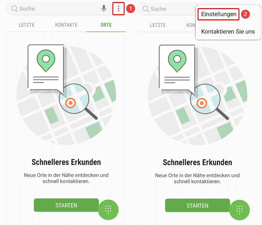- Öffne die Telefon-App und klicke rechts oben auf die drei senkrechten Menüpunkte.
