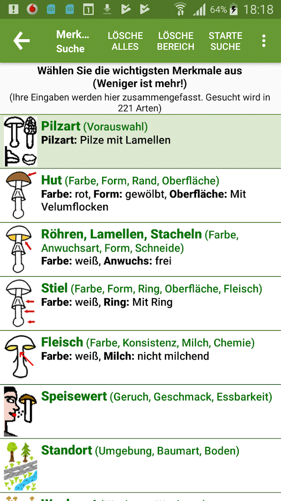 Nicht ohne Grund gehört die App Meine Pilze zu den beliebtesten Android-Apps, wenn es um die Sammlung von Pilzen geht. Schließlich schwören tausende User auf die Zuverlässigkeit der App zur Pilzbestimmung. Doch auch von Profi-Seite hat die Anwendung für Android-Geräte jede Menge Lorbeeren eingeheimst. So hat die „Deutsche Gesellschaft für Mykologie“ die App zur Testsiegerin unter allen verfügbaren Apps für die Pilzbestimmung gekürt. Doch was macht sie so besonders? Auf den ersten Blick mag die Anwendung auf den einen oder anderen abschreckend wirken. Die kleine Schrift und klassischen Fonts machen einen etwas angestaubten Eindruck. Ein Blick hinein lohnt sich dennoch. Schließlich bemerkt man mit der Zeit, dass die App eine stylische Aufmachung gar nicht nötig hat. Stattdessen punktet sie mit einem gigantischen Fundus an wertvollem Wissen rund um das Thema Pilze. Neben detaillierten Informationen, die bei der Pilzbestimmung helfen, erhältst du auch Zugriff auf ein spannendes Lexikon und Buch über Pilze.