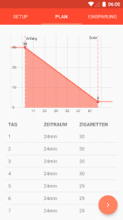 Hast du diesen Kennwert einmal registriert, musst du dich entscheiden, bis zu welchem Zeitpunkt du zum kompletten Nichtraucher werden möchtest. Nun errechnet die praktische App dir, wie viele Zigaretten du maximal noch am Tag rauchen darfst und lässt die Anzahl langsam aber stetig sinken. Hierbei greift dir die App nicht nur mit jeder Menge nützlichen Tipps unter die Arme. Obendrein sorgen interessante Fakten wie bereits eingespartes Geld und hinzugewonnene Lebenszeit für einen nicht zu verachtenden Motivationsschub.