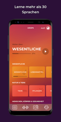 Mit der Hilfe von Drops kannst Du Dich für das Lernen von bis zu 32 verschiedenen Sprachen entscheiden. Diese alle aufzuzählen würde den Rahmen sprengen. Neben den europäischen Klassikern findest Du hier jedoch auch Exoten wie Kantonesisch, Mandarin und Hindi. Erfreulich übersichtlich kommt die Sprachlern-App daher. Anstelle von langweiligen Unterrichtseinheiten bietet Drops Dir spaßige und sinnvolle Übungen an. Diese sind wie Mini-Spiele gestaltet. Beispielsweise musst Du bestimmten Bildern den passenden Begriff zuordnen. Spaß macht auch die Antwortsuche in einer Art Buchstabensalat. Dabei musst Du nicht zwangsläufig Geld bezahlen, um Deine grauen Zellen etwas zum qualmen zu bringen. In der kostenlosen Version kannst Du bereits alle Übungen absolvieren. Allerdings stehen Dir dabei nur fünf Minuten täglich zur Verfügung. Dies sorgt zwar dafür, dass Du keine Ausreden mehr hast, ob der Lernfortschritt schnell von statten geht ist jedoch mehr als fraglich. Wer wirklich eine neue Sprache lernen möchte, sollte also einen Blick auf die Premium-Version werfen.