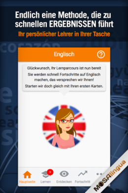 Zu guter Letzt möchte ich noch ein paar Worte zur App mosalingua verlieren. Die kostenlose Sprachlern-App gibt es mittlerweile für viele verschiedene Sprachen. In unserem Beispiel haben wir die App für Englisch ausgewählt. Mosalingua bietet Dir von Anfang an nur nützliche Inhalte, die Dich Stück für Stück Deinem Ziel näher bringen sollen. Dabei konzentriert sich die App auf das Wesentliche. Du musst nicht hunderte Stunden Vokabeln lernen, die Du ohnehin nie benötigst. MosaLina bringt Dir die 20 Prozent bei, die für 80 Prozent der anfallenden Lebenssituationen ausreichen. Damit ist die App beispielsweise die perfekte Vorbereitung auf einen anstehenden Urlaub. Die Art und Weise des Lernens mit MosaLinga basiert auf wissenschaftlichen Studien. Das Experten-Team rund um die Entwickler hat Lerntechniken erarbeitet, die Dir ein möglichst schnelles Erlernen einer neuen Sprache garantieren sollen.