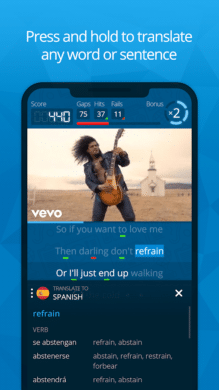 Wer einen Hang zu Musik hat, kann mit der Unterstützung von „Learn Languages with Music“ spielend leicht neue Sprachen lernen. Dabei verzichtet die App gänzlich auf Lektionen oder andere Lerneinheiten. Alles, was Du hier tun musst, ist Musikvideos mit Untertiteln anzusehen. In einer Art Quiz musst Du dann an bestimmten Liedstellen antworten, welcher Begriff als nächstes vorkommt. So lernst Du spielerisch neue Wörter. Doch die App bietet auch einen Mehrwert. So ist ein praktischer Übersetzer integriert. Selbstverständlich ist diese Art des Lernens nicht annähernd so effektiv wie es bei den anderen Vertretern der Fall ist. Spaß macht es trotzdem!