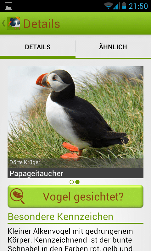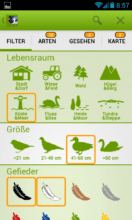 In Sachen Vogelbestimmung geht auch diese App einen eher klassischen Weg. Wenn du einen Vogel bestimmen möchtest, greifst du auf den umfangreichen Katalog von Merkmalen zu. Hier kannst du durch Auswahl der passenden Merkmale Schritt für Schritt das Feld möglicher Vogelarten eingrenzen. Die verschiedenen Fotos helfen dir ebenfalls dabei, die in Frage kommenden Vögel mit dem von dir gesehenen abzugleichen. Hast du dies getan, kannst du dich dank der umfangreichen Informationen zu jedem Tier belesen.
