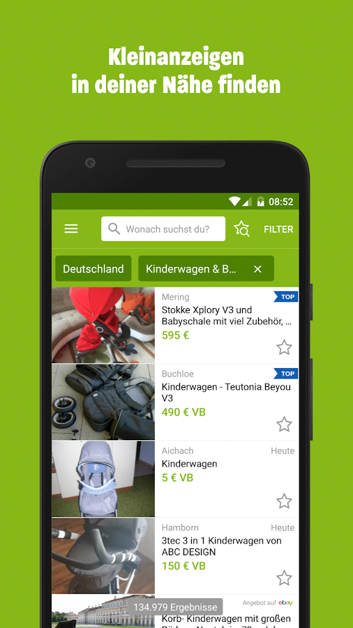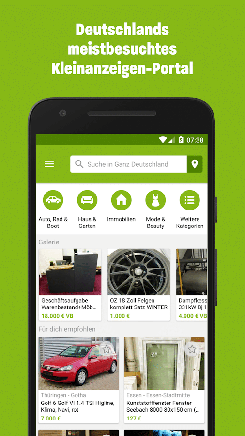 Bei eBay Kleinanzeigen handelt es sich um Deutschlands Online Marktplatz Nr. 1. Hier kannst du mithilfe deines Smartphones ganz bequem von der häuslichen Couch aus Dinge kaufen oder verkaufen. Die App macht dabei die Nutzung noch einfacher. Der Online-Flohmarkt zeichnet sich vor allem durch seine gigantische Auswahl aus. Hier findest du von Kleidung, über Elektronik bis hin zu Fahrrädern alles, was das Herz begehrt. Mittlerweile kannst du bei eBay Kleinanzeigen sogar Wohnungen oder auch Autos kaufen.