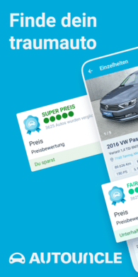 Die Android-App AutoUncle fokussiert sich auf den Kauf von gebrauchten Fahrzeugen. Dabei kannst du dich auf eine unabhängige Preisprüfung verlassen. Grundlage der Prüfung ist eine umfangreiche Bibliothek von AutoUncle. So sammelt, vergleicht und bewertet der Anbieter über 11,5 Millionen Gebrauchtwagen aus über 1.900 Webseiten europaweit. Im Fokus der Entwickler stehen dabei nicht nur kleine private Inserate.