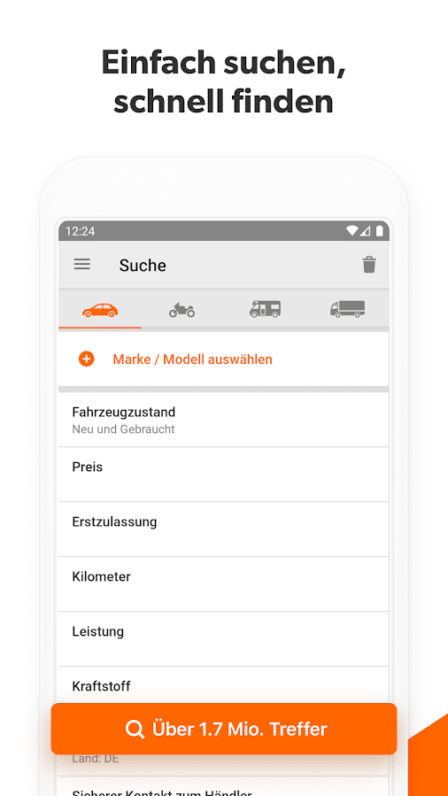 Mit mobile.de bekommst du Deutschlands größten Automarkt. Hier hast du die Auswahl zwischen 1,4 Millionen Autos, Motorrädern und anderen Fahrzeugen. Dabei besticht mobile.de häufig mit Preisen, die dir Händler vor Ort nicht bieten können. Um das passende Wunsch-Auto zu finden, setzt die App auf umfangreiche Suchfunktionen und Filteroptionen. Doch nicht nur beim Kauf eines neuen Autos kannst du auf die umfangreiche App zählen. Auch der Verkauf des eigenen Autos könnte einfacher nicht sein. Dabei kannst du dein Auto nicht nur an einen Dritten verkaufen. Obendrein bietet dir die App die Möglichkeit, das Fahrzeug an einer speziellen Ankaufstation des Unternehmens loszuwerden.