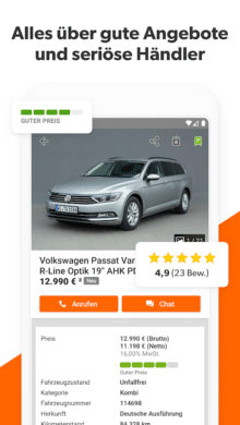 Nicht nur der Kauf eines neuen oder gebrauchten Automobils soll kein Problem sein. Obendrein gestaltet die App auch den Verkauf deines Gebrauchten unkompliziert. Vor allem Personen, die sich in dem Metier nicht allzu gut auskennen, werden sich über die kostenlose Fahrzeugbewertung der App freuen. Dies erleichtert dir die Festlegung eines Preises bei der Erstellung deines Inserats. Wenn du einen passenden Interessenten für dein Auto gefunden hast, kannst du dich auf eine garantierte Zahlung freuen. Schließlich setzt PKW.de nur auf zuverlässige Premium-Partner.