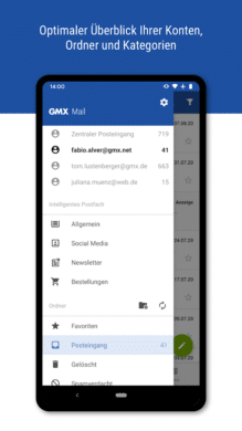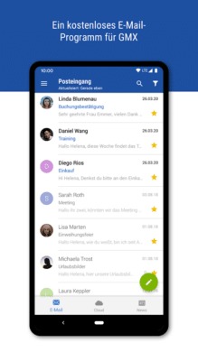 GMX Mail ist nicht nur eine unkomplizierte, einfach gehaltene E-Mail-App, sondern gleichzeitig eine vielseitige Kommunikationslösung, die besonders für GMX-Nutzer attraktiv ist. Was GMX Mail von anderen E-Mail-Apps unterscheidet, ist die nahtlose Integration mit der GMX Cloud, die es Nutzern ermöglicht, Dateien direkt aus der Cloud in E-Mails anzuhängen und mit anderen zu teilen. Ein weiteres herausragendes Merkmal ist die Möglichkeit, mehrere E-Mail-Konten unterschiedlicher Anbieter in einer einzigen App zu verwalten. Dadurch wird GMX Mail zur zentralen Anlaufstelle für deine digitale Kommunikation. Die App bietet außerdem personalisierbare Widgets und Benachrichtigungsoptionen, die dich dabei unterstützen, wichtige E-Mails sofort zu erkennen und schnell darauf zu reagieren.