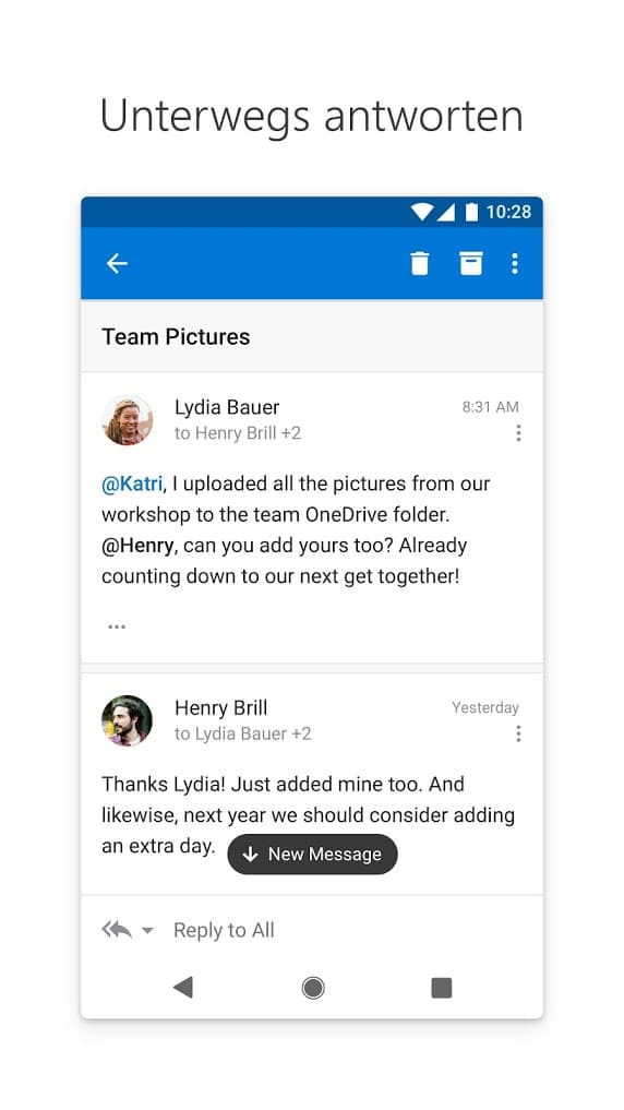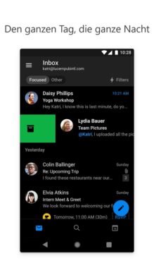 Die App zeichnet sich durch eine intuitive Benutzeroberfläche aus, die sowohl für professionelle als auch für private Nutzer geeignet ist. Mit einem unverkennbaren Fokus auf Sicherheit bietet Outlook außerdem fortschrittliche Funktionen wie End-to-End-Verschlüsselung für deine E-Mails. Die integrierten Kalenderfunktionen erleichtern deine Terminplanung. Du kannst zum Beispiel Einladungen direkt aus E-Mails heraus akzeptieren und in deinen Kalender übernehmen. Darüber hinaus lassen sich Anhänge direkt aus der Cloud hinzufügen, was die Zusammenarbeit mit anderen Teammitgliedern und die Dateiverwaltung im Allgemeinen vereinfacht.