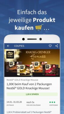 Die App Coupies basiert auf einem anderem Konzept als die anderen hier vorgestellten. Bei Coupies spart man nicht dank Schnäppchen Geld. Hier setzt man vielmehr auf das Prinzip des Cashbacks. Wenn Du mit Coupies Geld sparen möchtest, musst Du zu aller erst der Webseite einen Besuch abstatten. Dort kann man einsehen, welche Coupons es derzeit gibt. Sollte Dein anschließender Shopping-Trip zum Kauf eines der angegebenen Produkte führen, kannst Du den Einkaufsbon abfotografieren und bequem einreichen. Dank App für Android funktioniert dies völlig reibungslos. Hierbei sind bis zu 100% Cashback möglich. In Deinem Onlinekonto werden die angesammelten Cashbacks gespeichert. Sobald Du mindestens 5 Euro angesammelt hast, kannst Du sie Dir auszahlen lassen.