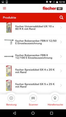 Wie der Name bereits vermuten lässt, richtet sich diese praktische App an professionelle Hand- und Heimwerker. Fischer Professional für Android und iOS lässt Dich für jedes Problem in der Baustelle eine geeignete Lösung finden. So gibt sie immer die passende Produktpalette für das gegenwärtige Problem preis. Hierbei steht natürlich ganz klar die Befestigung von Dingen im Fokus.