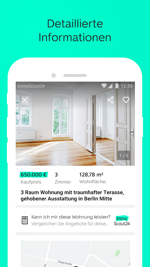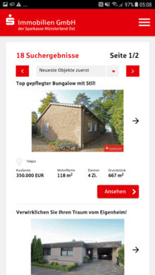 Dabei trumpft die App wie die anderen großen Immobilienmärkte mit einer Reihe praktischer Features auf. Hierzu gehören nicht zuletzt die detaillierten Such- und Filteroptionen, die dich deiner Traumimmobilie ein Stückchen näher bringen. Die Sparkasse punktet hier nicht nur mit Wohnobjekten. Darüber hinaus findest du die passende Gewerbeimmobilie oder auch Grundstücke sowie bloße Anlageobjekte.