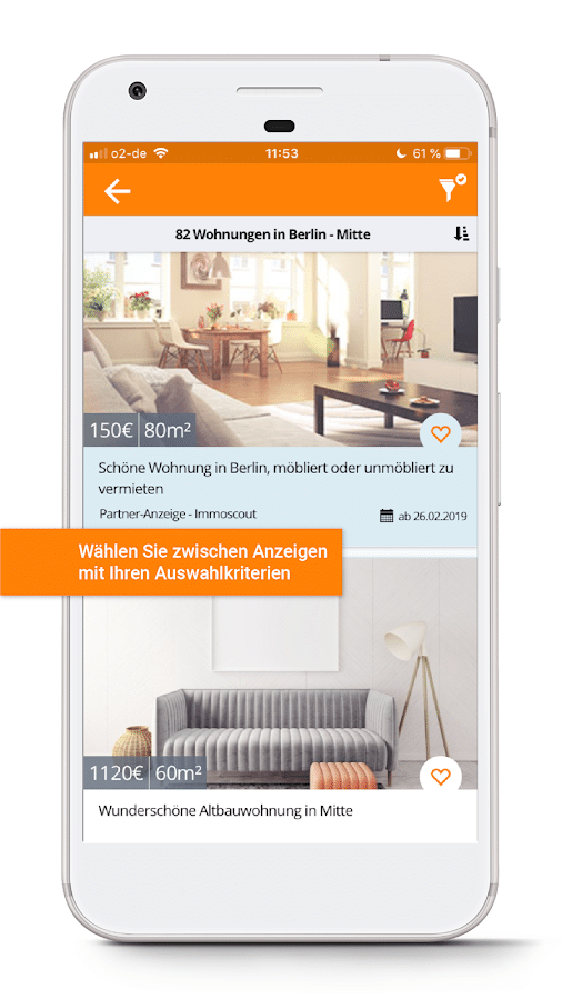 Auch eine gezielte Suche in bestimmten Stadtteilen ist problemlos möglich. Dabei verlierst du nie die Übersicht. Hierfür ist nicht zuletzt die Möglichkeit unterschiedlicher Suchkriterien und Filteroptionen verantwortlich.