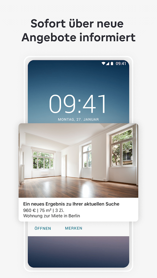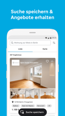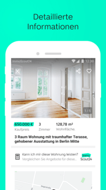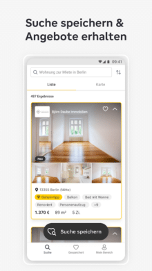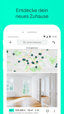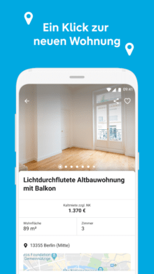Den Anfang in unserer Liste macht natürlich der Platzhirsch. ImmobilienScout24 war die erste große Webseite, auf der man sich bequem von Zuhause aus auf Wohnungssuche begeben konnte. Mittlerweile gibt es natürlich auch eine passende App für Android-Geräte. So kannst du immer und überall nach der passenden Wohnung suchen. Zur Auswahl stehen dir hier die unterschiedlichsten Immobilien. Egal, ob Gewerbe- oder Wohnimmobilie. Egal, ob Kauf- oder Mietimmobilie. Bei ImmobilienScout24 wirst du in vielen Fällen fündig.