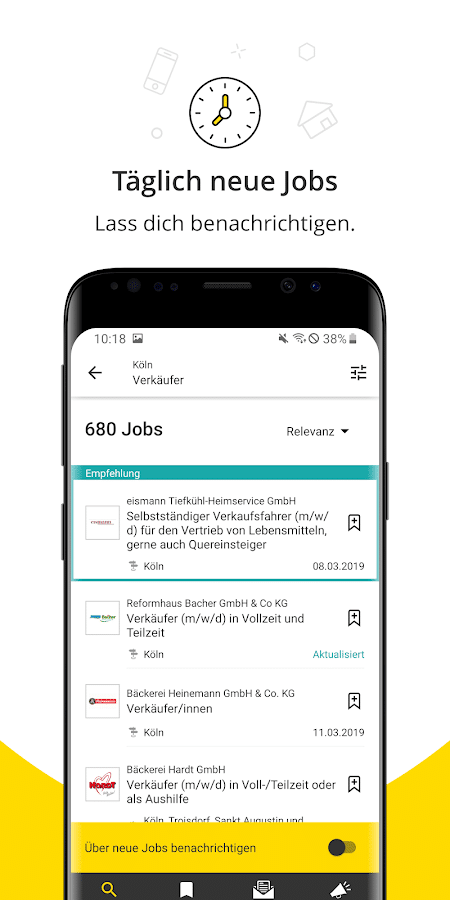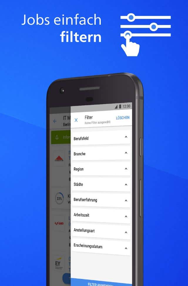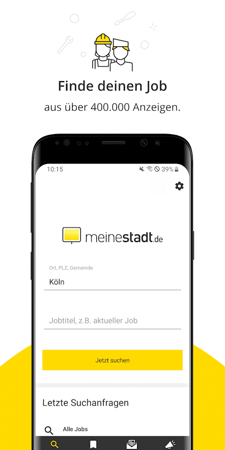 Die Jobangebote von meinestadt.de gehören zu den vielfältigsten auf dem gesamten deutschen Markt der Jobbörsen. Mit über 400.000 Stellenangeboten wird dabei wohl jeder fündig. Hier überzeugt nicht nur die schiere Anzahl an Stellenangeboten. Darüber hinaus sind die Jobangebote auch auf Deine Region zugeschnitten. Dies ist ein überzeugendes Alleinstellungsmerkmal von meinestadt.de. Insgesamt bietet die Job-App Stellenangebote in 11.000 Städten. Dank der praktischen Filteroptionen findest Du garantiert auch den passenden Job in Deiner Region. Wenn Du fündig geworden bist, kannst Du Dich per App auch direkt bewerben. So steht Deinem Karrierestart oder -neustart nichts mehr im Wege!
