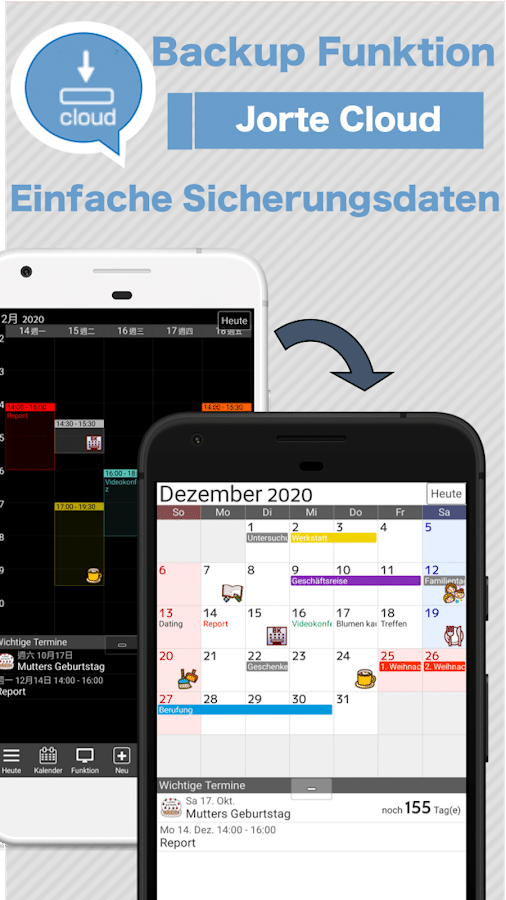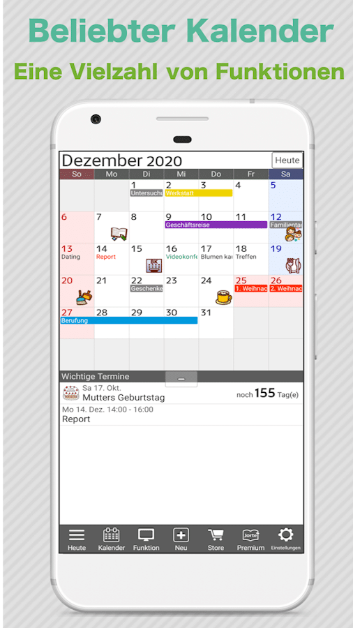 Du möchtest Dir Deine Kalender-App ganz nach Deinen eigenen Vorstellungen zusammenstellen? Dann ist Jorte wohl genau das richtige für Dich. Hier werden Dir viele und vor allem umfangreiche Anpassungsmöglichkeiten geboten. Dies beginnt bereits bei den Symbolen und Hintergründen. Ein Blick in den App-eigenen Store genügt bereits. Hier kannst Du die unterschiedlichsten Icons und Themen herunterladen. Doch darüber hinaus Funktioniert die App natürlich auch als Kalender hervorragend. Sie ist übersichtlich, unkompliziert und zuverlässig.