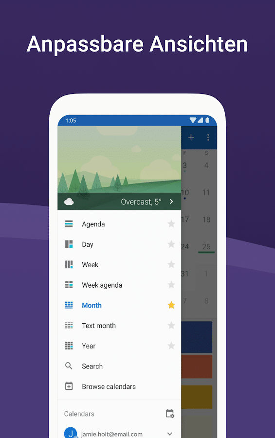 Business Calendar 2 ist eine Kalender-App, die vor allem mit ihrem schieren Umfang glänzen kann. Neben einer Reihe praktischer Widgets und ausgeklügelter Kalender-Funktionen bietet die Anwendung für Android noch weit mehr. So gibt sie beispielsweise auch eine Wettervorhersage, damit Du bei Deinen Terminen auch immer richtig angezogen bist. Darüber hinaus kann man die vorhandenen Termine bequem per Drag & Drop hin und her schieben.