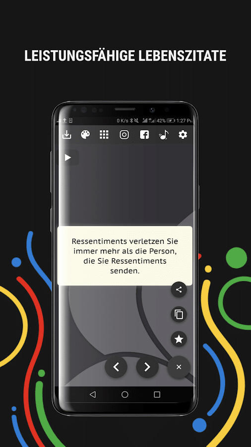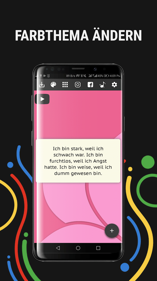 Diese können in einem Moment trösten und im anderen wiederum aufmuntern. Damit ist die Android-exklusive Anwendung eine echte eierlegende Wollmilchsau unter den Apps. Über sich wiederholende Sprüche musst du dir dabei kaum Sorgen machen. Schließlich sorgen die Entwickler jeden Tag für viele neue Inhalte. Doch nicht nur die umfangreiche und stetig wachsende Mediathek überzeugt. Obendrein punktet die App mit ihrem Layout. Hier setzen die Entwickler nämlich auf hübsche Backgrounds, die die Zitate gekonnt in Szene setzen. Die entsprechenden Bilder kannst du dann direkt per WhatsApp und co. verschicken.