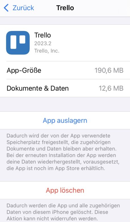 Hier hast du ferner die Möglichkeit, eine App auszulagern. Hierdurch wird sie vom Gerät entfernt und der verwendete Speicherplatz wird frei. Installierst du sie erneut, werden die alten Daten jedoch wiederhergestellt.