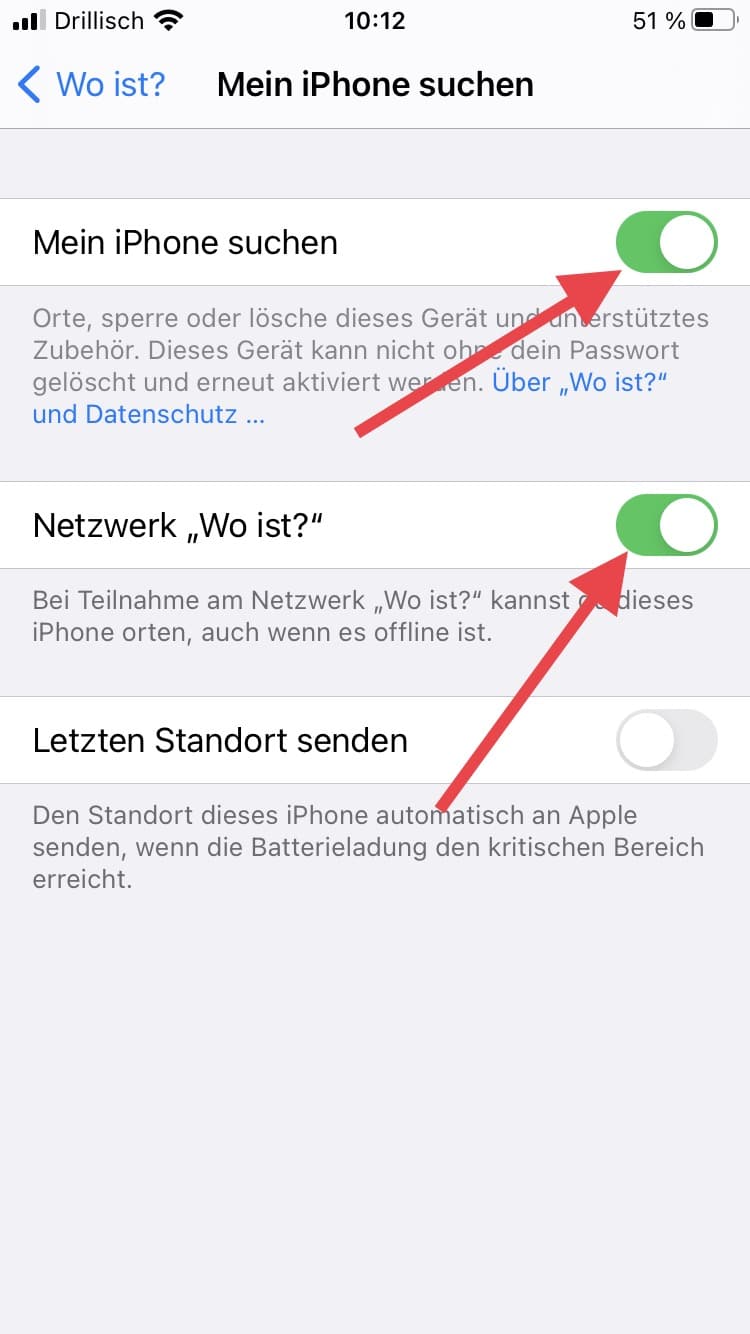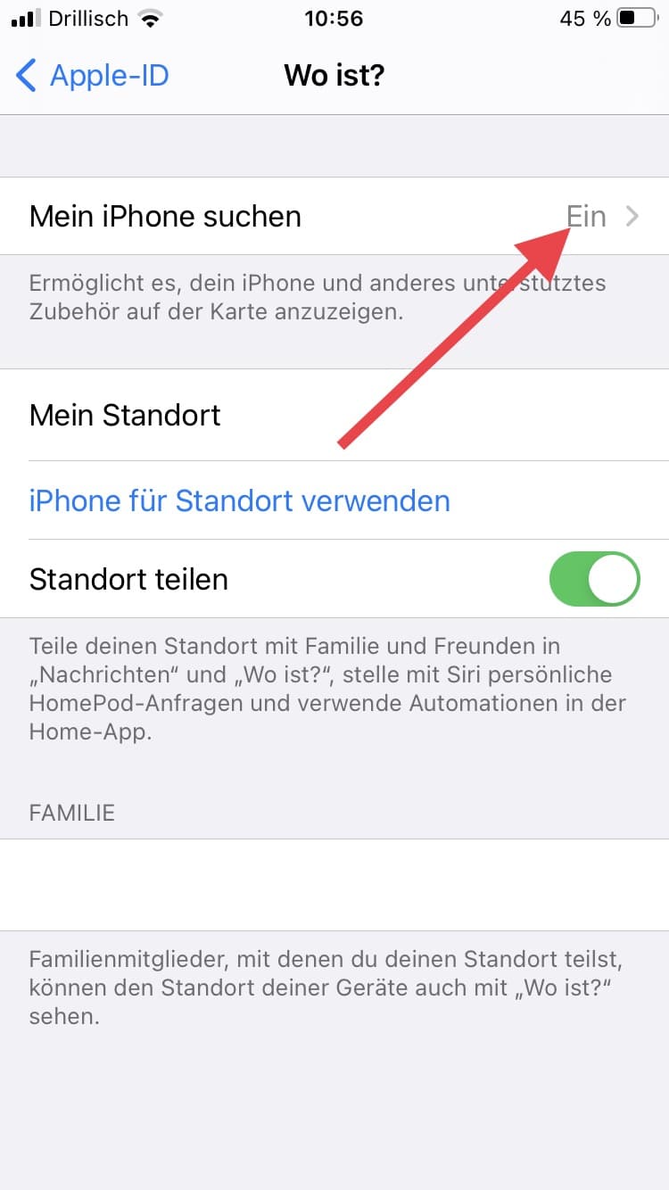Doch nicht nur von der iCloud solltest Du Dich abmelden. Auch das Feature „Wo ist mein iPhone“ sollte vor einem Zurücksetzen ausgeschaltet werden. Dies ist zumindest dann der Fall, wenn Du Dein iPhone nach dem Reset verkaufen oder anderweitig zur Verfügung stellen möchtest.