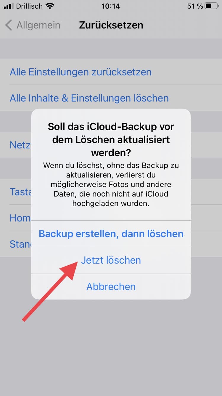 Nachdem Du die beiden ersten Schritte absolviert hast, kann es ans Eingemachte gehen. Nun hast Du die Grundlage dafür gelegt, Dein iPhone auf Werkseinstellungen zurückzusetzen. Um den Reset durchzuführen, gehst Du zunächst in die Einstellungen. Hier klickst Du auf den Punkt „Allgemein“. Dort scrollst Du herunter bis zu dem Punkt „Zurücksetzen“. Nun hast Du die Wahl zwischen „Alle Einstellungen zurücksetzen“ und „Alle Inhalte & Einstellungen löschen“. Um Dein iPhone für den Verkauf fit zu machen, wählst Du „Alle Inhalte & Einstellungen löschen“. Denn so wird es auf den Zustand der Auslieferung zurückgesetzt.
