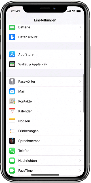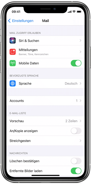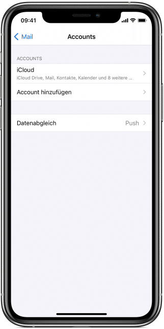 - Tippe innerhalb der Einstellungen zu Mail auf den Punkt „Accounts“.