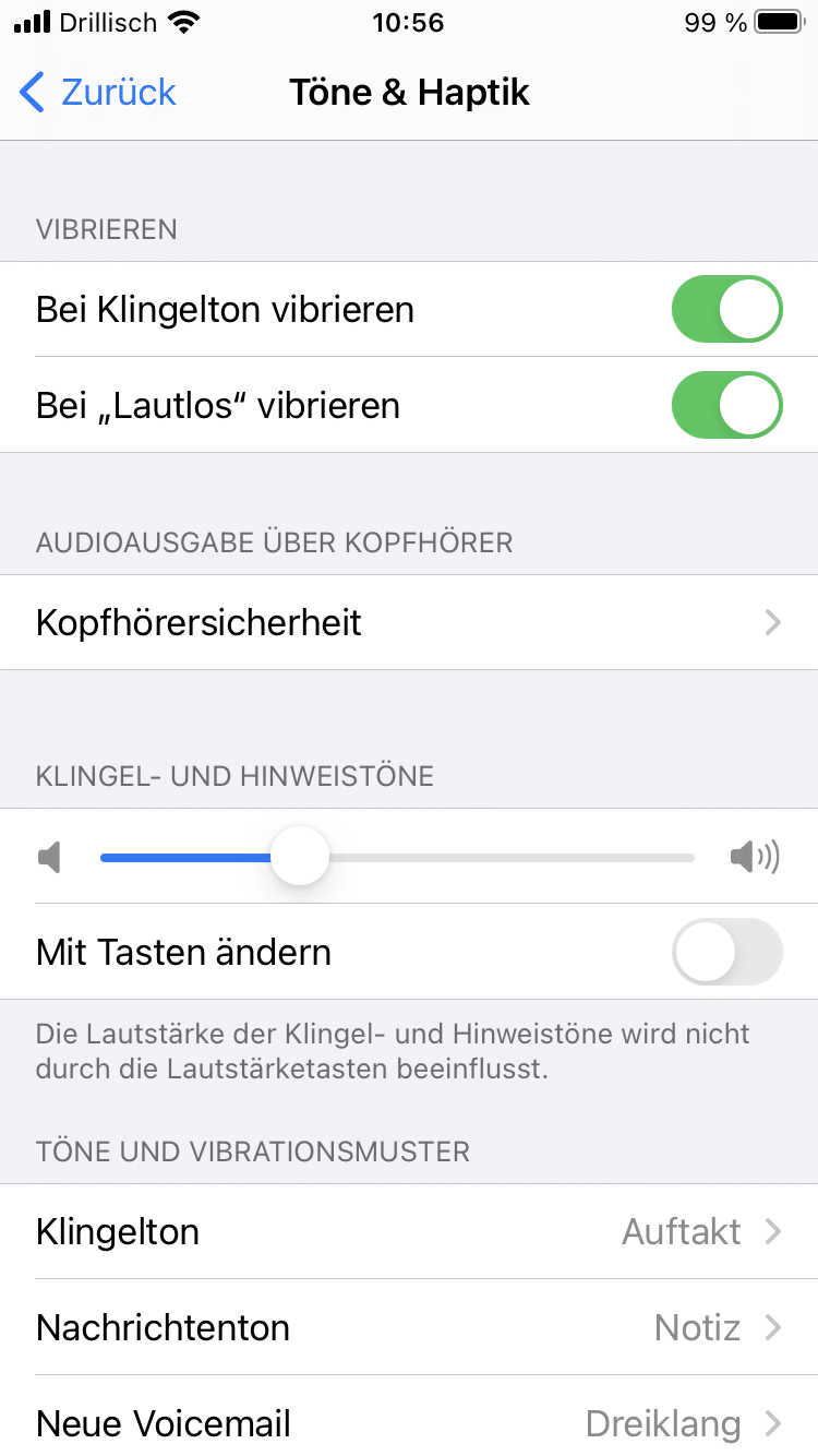 Ob du falsche Toneinstellungen im iPhone hast, kannst du ganz einfach nachprüfen. Gehe dafür zu aller erst auf die „Einstellungen“. Anschließend wählst du den Punkt „Töne & Haptik“ aus. Hier findest du eine Zwischenüberschrift namens „Klingel- und Hinweistöne“. Den entsprechenden Regler darunter schiebst du nun nach rechts. Es steigt die Lautstärke und du kannst überprüfen, ob es Soundprobleme aufgrund einer falschen Einstellung gibt.