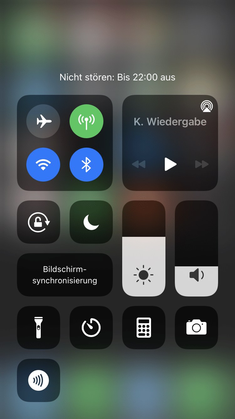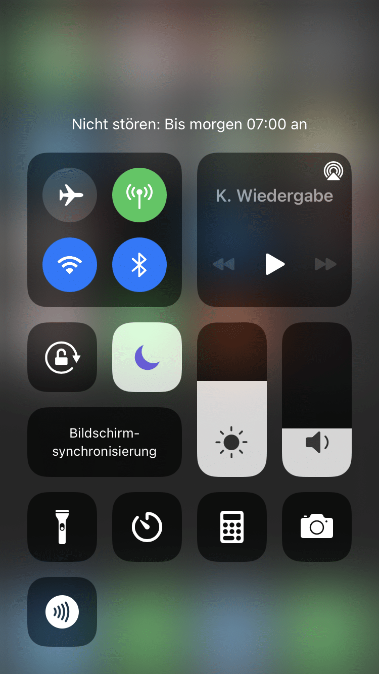 Um das Kontrollcenter zu öffnen musst du je nach iPhone-Modell von unten nach oben oder von oben nach unten wischen. Während es beim iPhone 8 und älter eine Wischgeste von unten nach oben öffnet, musst du beim iPhone X und neuer genau Gegenteiliges tun. Wenn du im Kontrollcenter einen weiß leuchtenden Halbmond sehen kannst, ist der Modus eingeschaltet. Zum Ausschalten musst du einfach nur darauf tippen. Ist der Modus ausgeschaltet, müsste das iPhone die Töne wieder ausgeben.