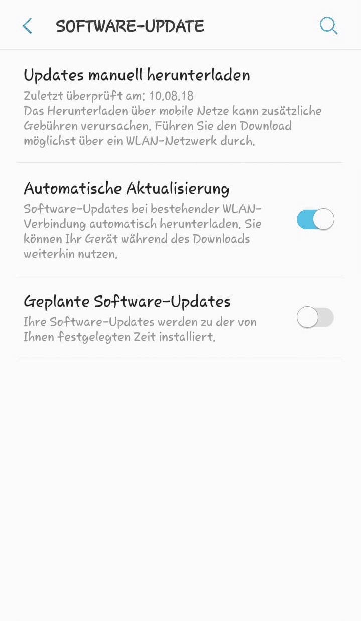 Bei Samsung-Smartphones heißt der Punkt „Software-Updates“. Anzeige bei aktivierten automatischen Updates.