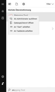 Alternativ ist es euch natürlich möglich, einfach Snipping nach dem Öffnen der Startleiste einzutippen und es dann auszuwählen. Wenn ihr das Tool öfters nutzen wollt, solltet ihr dieses an die Taskleiste anheften. Hierzu müsst ihr mit Rechtsklick auf Snipping Tool, wie oben beschrieben gehen, und dann An Taskleiste anheften auswählen. Ihr seid zudem in der Lage, es als Kachel auf der Startleiste anzeigen zu lassen, indem ihr nach dem Rechtsklick An Start anheften auswählt.