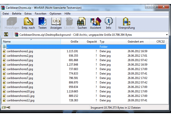 Bevor wir Bilder aus einem Themepack extrahieren können, brauchen wir natürlich zuerst eines. Es gibt viele Seiten, auf denen man welche findet, ich habe jetzt einfach mal eins direkt von der Microsoft Theme-Seite mit karibischen Stränden genommen. Ihr könnt natürlich nehmen, welches ihr wollt und müsst dabei auch nicht auf Microsofts Themes zurückgreifen.