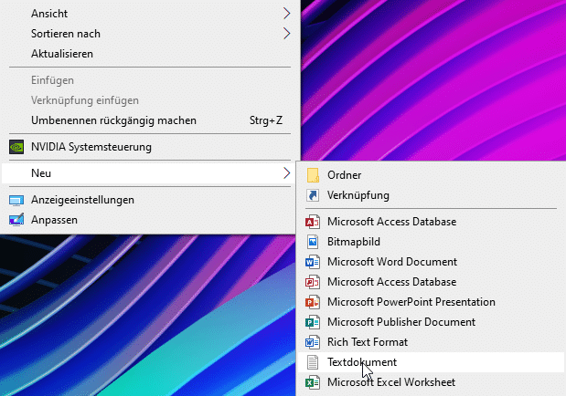 Zuerst erstellen wir uns am Ort für das BATCH-File. Ihr ruft den gewünschten Speicherort auf, und erstellt per Rechtsklick ein neues Textdokument. In dieses Textdokument schreiben wir nun die wichtigen Zeilen zum Leeren des Download-Ordners.