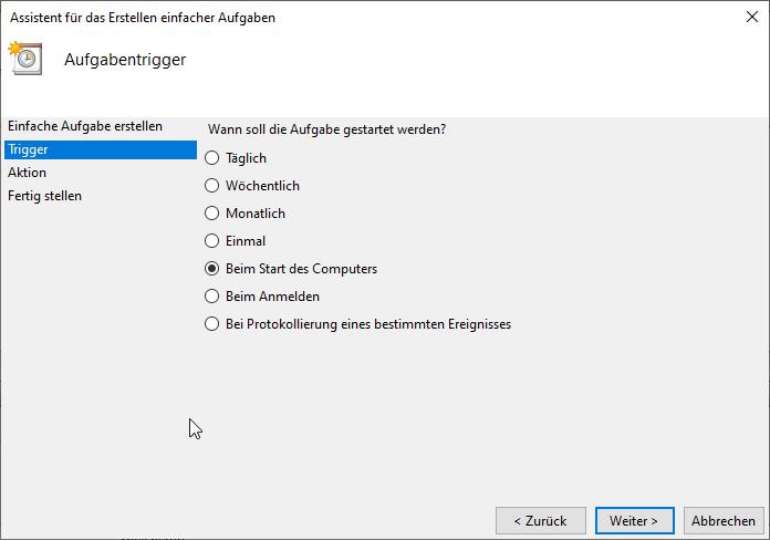 - Aufgabenplanung nutzen, um das BATCH-File bei jedem Start von Windows auszuführen.