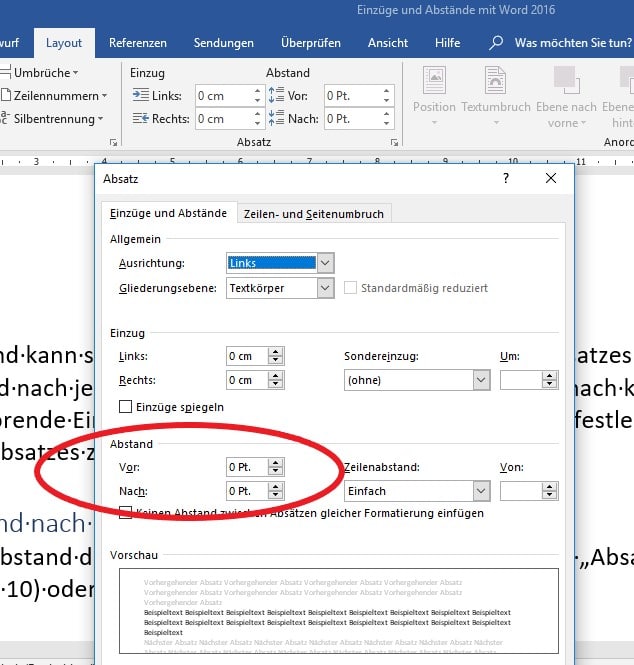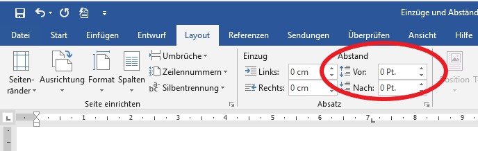 Abstand vor und nach einem Absatz