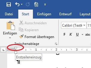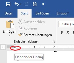 Die Sondereinzüge könnt ihr nur über das Dialogfeld „Absatz“ -> Einzüge und Abstände einstellen (BILD 7) oder über das Zeilenlineal. Für den Erstzeileneinzug müsst ihr das obere Dreieck der Sanduhr bei gedrückter linker Maustaste verschieben (BILD 8), für den hängenden Einzug das untere Dreieck (BILD 9).