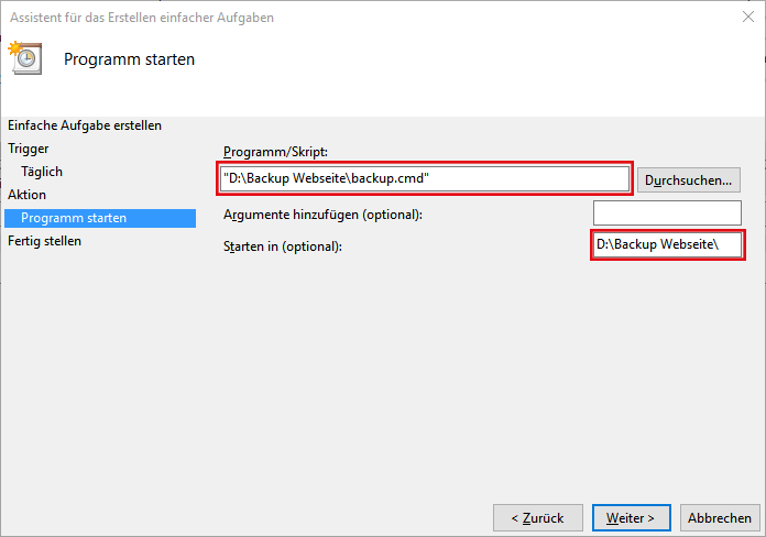 Zunächst musst du dir einen geeigneten Platz für dein FTP-Backup suchen. In diesen kommen die nötigen Dateien um das Backup durchzuführen sowie das Backup selber. Ich habe mir dazu den Ordner „D:\Backup Webseite\“ angelegt. Dieser Pfad wird auch in den folgenden Ausführungen zum Einsatz kommen. Falls du einen anderen Sicherungspfad wählst, vergiss nicht diesen im Script anzugeben.