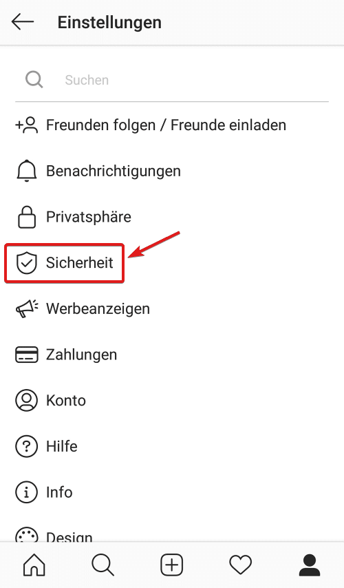 - Unter Einstellungen findest du das Feld Sicherheit.
