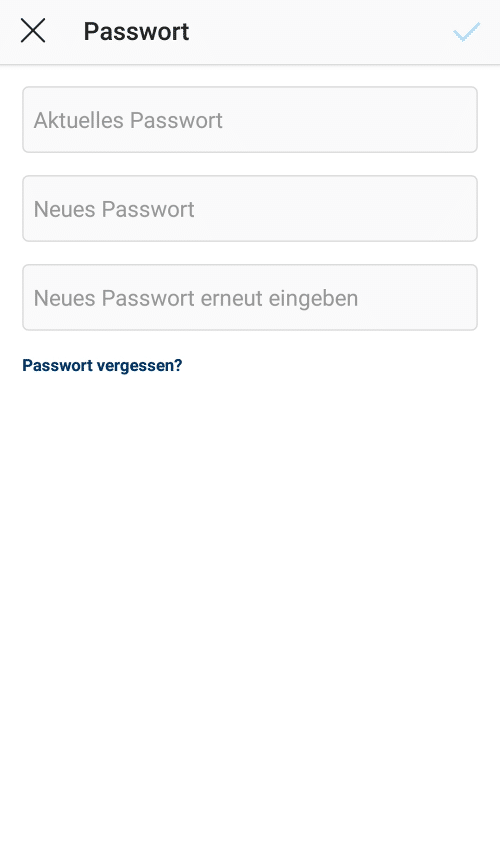 - Im darauffolgenden Fenster kannst du dein Passwort beliebig ändern. Beachte, dass du danach automatisch von allen Geräten abgemeldet wirst.