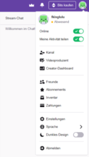 - Wenn du deinen Benutzernamen änderst, verlierst du den Zugriff auf die Broadcaster-Statistiken, die mit deinem alten Namen verbunden sind. Wenn du deine Broadcaster-Statistiken behalten möchtest, musst du sie vor der Namensänderung exportieren. Hier findest du all deine Statistiken. Klicke rechts oben neben den Statistik-Grafiken auf die Export-Funktion, um die Broadcaster-Statistiken zu exportieren. Hinweis: Dabei werden nur die Daten in der aktuellen Ansicht heruntergeladen. Es gibt keine Möglichkeit, alle Statistiken auf einmal zu exportieren.