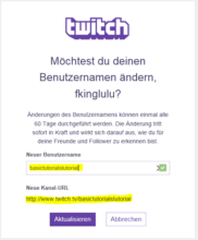 - Mit dem Klick auf Aktualisieren habt ihr euren Namen auf Twitch geändert.