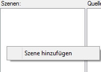 Jetzt zum eigentlichen Tutorial: Im ersten Teil hatte ich ja schon erzählt, dass sich die Szenen aus OBS wie die aus einem Film verhalten. Am Anfang erstellen wir uns einfach mal eine Szene in dem wir einen Rechtsklick in das Feld „Szenen“ machen. Am besten benennt ihr die neue Szene nach dem Spiel/Fenster/Programm, das ihr im Stream wiedergeben wollt. Das dient einfach der Übersicht, falls ihr irgendwann die ein oder andere Szene habt. Der erste Schritt ist getan. Fehlt nur noch der Inhalt der Szene.