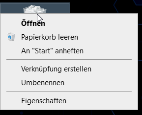 Auf den Papierkorb kannst du über verschiedene Wege zugreifen, z. B. über eine Verknüpfung auf dem Desktop oder über die Suche nach „Papierkorb“ im Windows Explorer. Es ist das einzige Symbol, welches standardmäßig auf dem Windows-Desktop angezeigt wird. Wenn du vom Desktop aus auf den Papierkorb zugreifst, unterscheiden sich die Optionen und Informationen des Papierkorbs von denen der physischen Papierkorb-Ordner, die auf jeder Partition im Windows Explorer zu sehen sind. Ab Windows XP mit NTFS kann der jeweilige Benutzer den Inhalt der Papierkörbe der anderen Benutzer nicht mehr sehen.